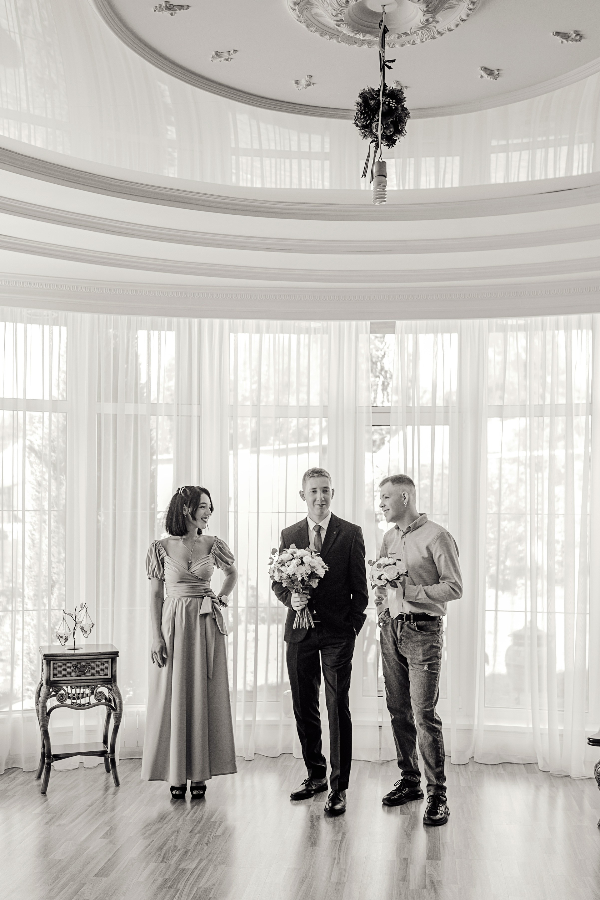 - Тривалість зйомки до 8 годин: розпис та прогулянка, студійна зйомка, збори нареченої/нареченого або банкет.